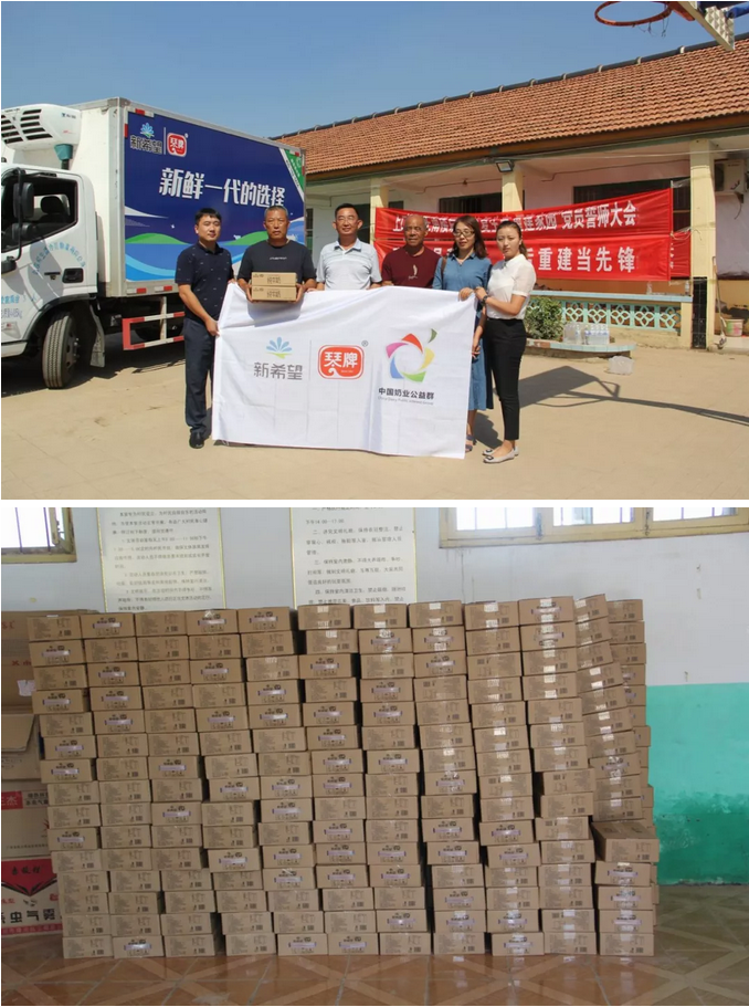 一方有難八方支援,災難發生后中國奶業公益群向群內發出倡議,呼吁自愿參與為災區奉獻愛心,奶業各企業紛紛行動起來,共收到86家企業和個人的愛心善款。災區人民恢復家園最需要的是溫飽和健康。9月8日,中國奶業公益群代表、山東健源生物邢燭等愛心人士攜手新希望乳業的相關人員到壽光市上口鎮趙王南樓后村,為災區人民送去愛心牛奶物資,為受災群眾提供營養補給,幫助受災群眾重建美好家園。