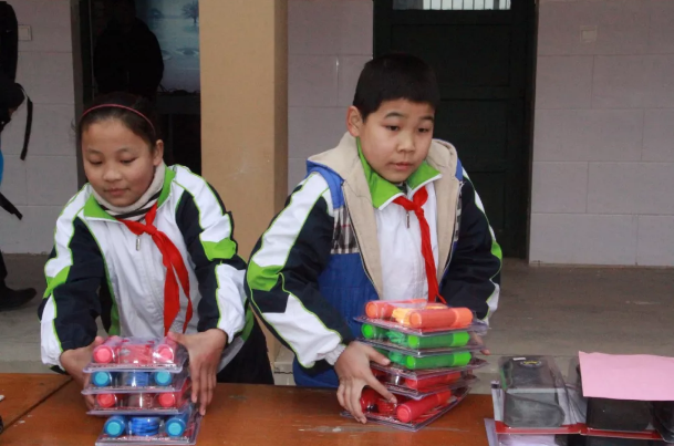 【為同學(xué)們分發(fā)學(xué)習(xí)用品】:
