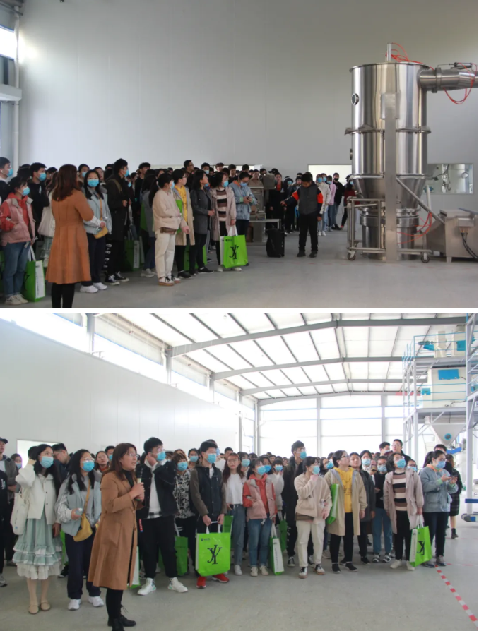 隨后,公司技術部李燕總監陪同來訪師生參觀了公司生產車間,李總監對廠區進行講解,參觀廠區內的環境設施和運作流程、工藝流程等,了解整個生產流程,詳細的講解生產過程中的注意事項,關鍵步驟以及一些關鍵性的原理,同學們都受益匪淺。