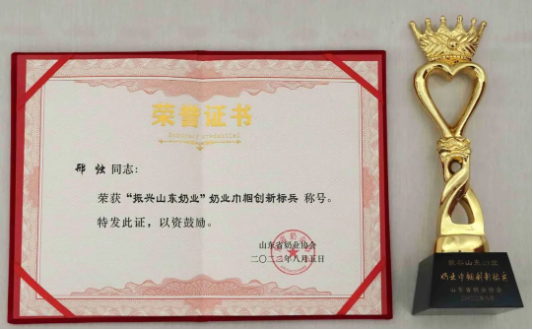 外宣部主任邢燭榮獲“振興山東奶業”奶業巾幗創新標兵稱號