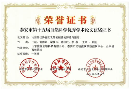 為深入推進泰安市“科創(chuàng)中國”試點市建設,培養(yǎng)人才,繁榮學術,鼓勵創(chuàng)新,提升泰安市廣大科技工作者的學術水平,根據泰安市人才工作計劃,由泰安市科協、泰安市科技局、泰安市人社局在全市組織開展了泰安市第十五屆自然科學優(yōu)秀學術論文評選活動。本次評選堅持公開、公平、公正的原則,采用異地評委評選的方式進行,共評出一等獎42項;二等獎70項;三等獎82項。山東健源生物科技有限公司《地源性優(yōu)勢青貯發(fā)酵乳酸菌的篩選與鑒定》項目榮獲泰安市第十五屆自然科學優(yōu)秀學術論文一等獎。