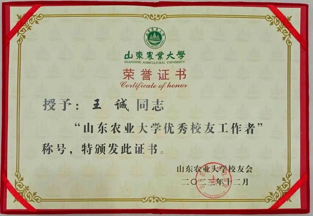 作為山東農(nóng)業(yè)大學(xué)的一名校友,健源生物董事長王誠飲水不忘思源,積極參與到泰安聯(lián)絡(luò)處換屆工作中,擔任換屆工作籌備組秘書長,本著隆重熱烈、務(wù)實節(jié)儉的原則,經(jīng)過明確分工、周密部署、精誠協(xié)作,被山東農(nóng)業(yè)大學(xué)校友會聘請為山東農(nóng)業(yè)大學(xué)校友會泰安聯(lián)絡(luò)處秘書長并授予“山東農(nóng)業(yè)大學(xué)優(yōu)秀校友工作者”榮譽稱號。