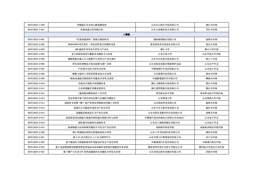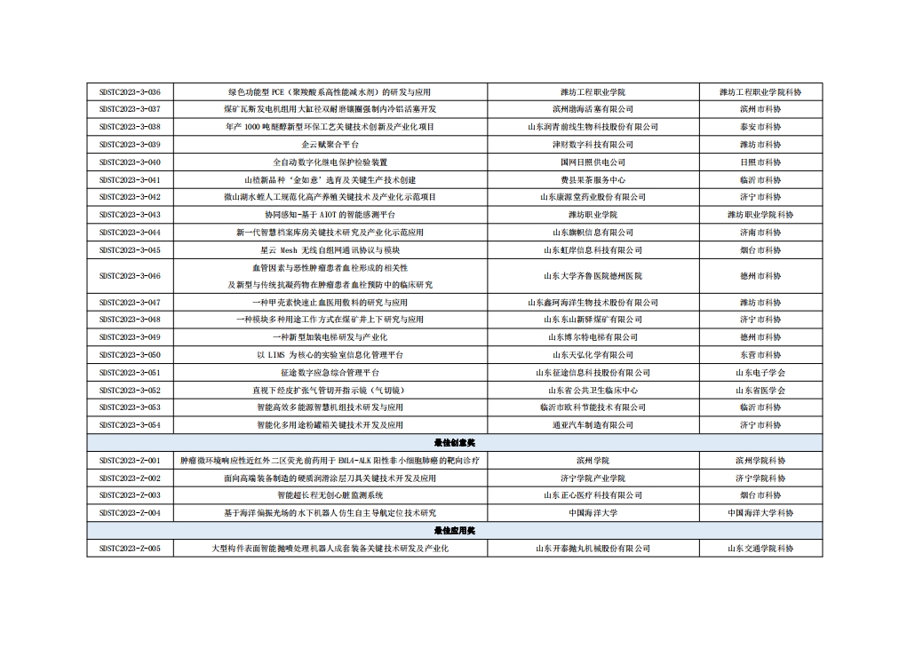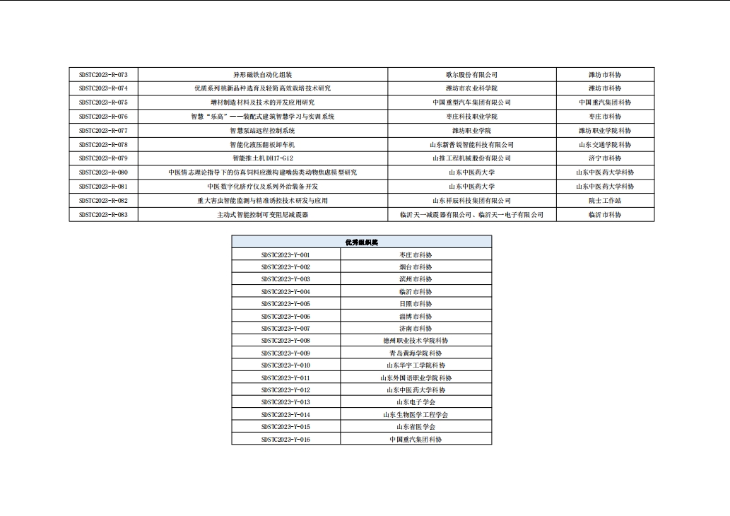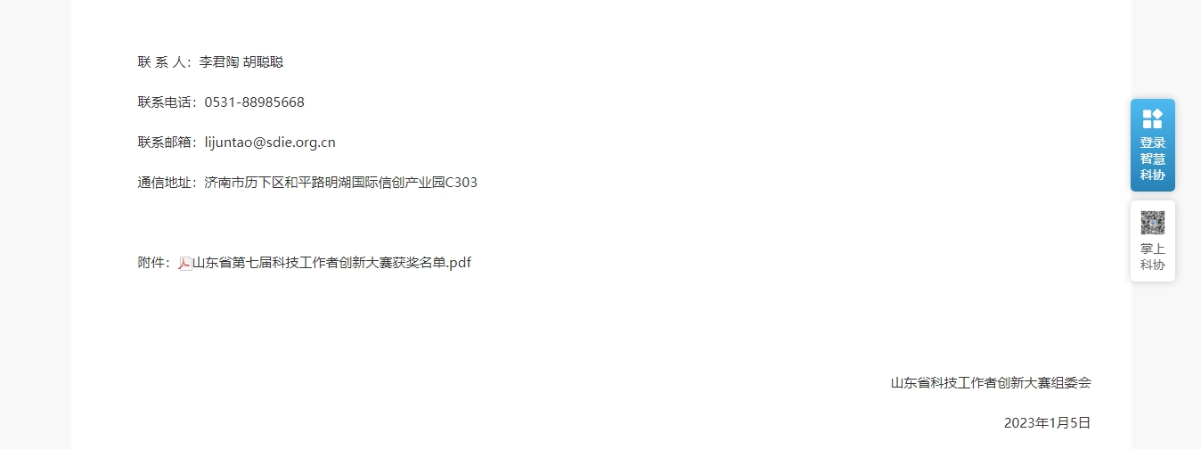 山東省第七屆科技工作者創(chuàng)新大賽獲獎(jiǎng)名單
