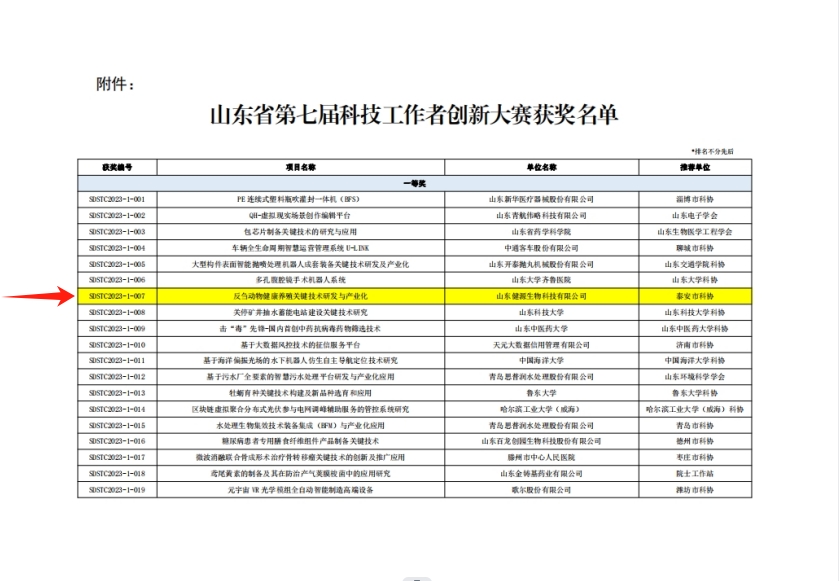 由山東健源生物科技有限公司申報(bào),泰安市科協(xié)推薦的《反芻動(dòng)物健康養(yǎng)殖關(guān)鍵技術(shù)研發(fā)與產(chǎn)業(yè)化》項(xiàng)目榮獲第七屆山東省科技工作者創(chuàng)新大賽一等獎(jiǎng)。