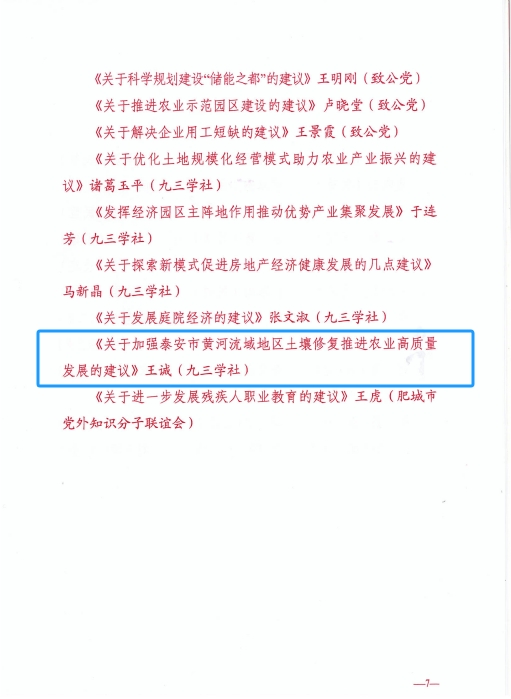 發布時間:[2024-7-9 17:52:5] 瀏覽量:3778次會上公布了《關于2023年度黨外人士建言獻策工作先進典型的通報》,王誠董事長被評為2023年度黨外人士建言獻策“建言先鋒”,撰寫的《關于加強泰安市黃河流域地區土壤修復推進農業高質量發展的建議》被評為2023年度黨外人士建言獻策“金點子”。