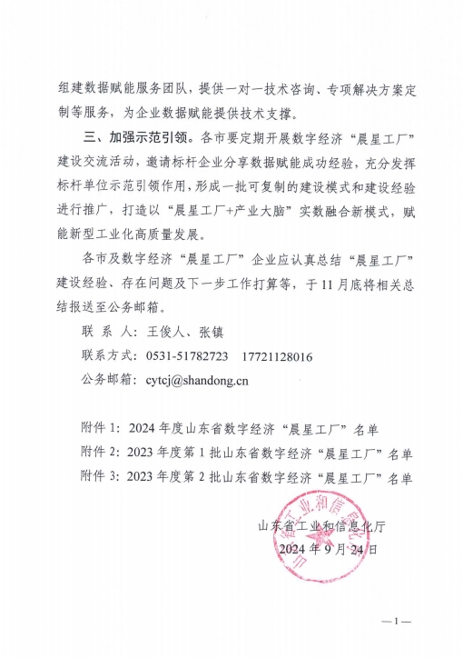 健源生物入選2024年度山東省數(shù)字經(jīng)濟(jì)“晨星工廠”名單
