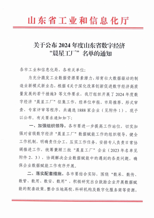 數(shù)字經(jīng)濟(jì)“晨星工廠”是山東省為推動數(shù)字經(jīng)濟(jì)發(fā)展而設(shè)立的重要榮譽(yù),旨在表彰那些創(chuàng)新能力突出、典型示范性強(qiáng)、應(yīng)用成效明顯、經(jīng)濟(jì)效益顯著的數(shù)字驅(qū)動型數(shù)字經(jīng)濟(jì)企業(yè),以加快推動山東省工業(yè)企業(yè)在更廣范圍、更深層級開展數(shù)據(jù)采集、傳輸、存算、管理及應(yīng)用工作,破除企業(yè)“數(shù)據(jù)孤島”,以工業(yè)大數(shù)據(jù)驅(qū)動制造業(yè)資源優(yōu)化配置,促進(jìn)數(shù)字技術(shù)與實(shí)體經(jīng)濟(jì)深度融合。
