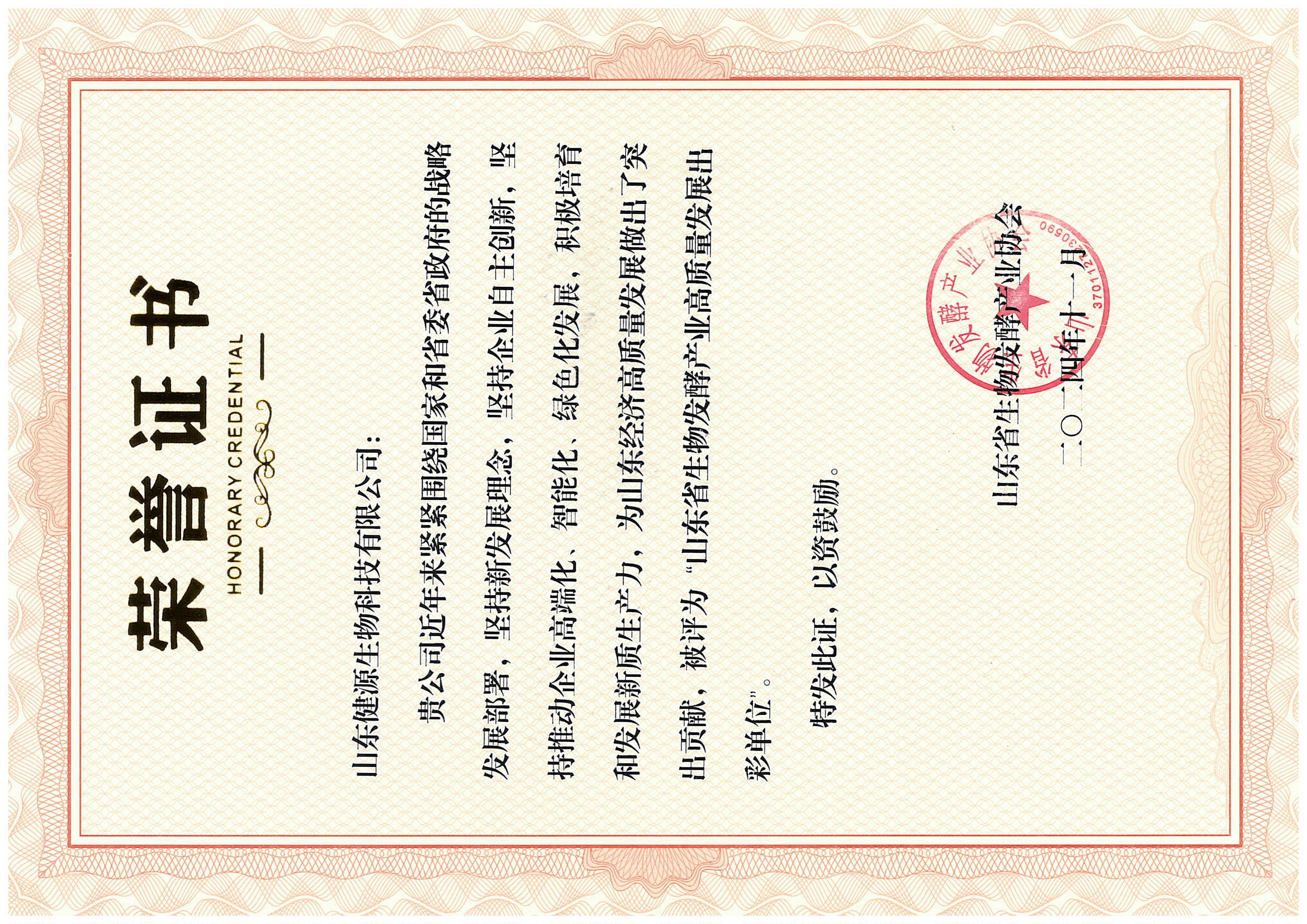 健源生物榮獲“山東省生物發酵產業高質量發展出彩單位”稱號