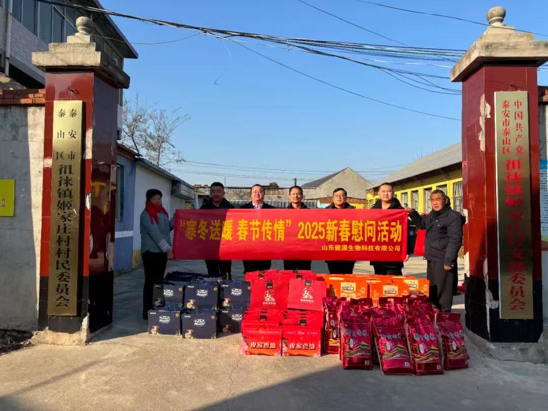 發(fā)布時間:[2025-1-20 17:16:13] 瀏覽量:2361次1月20日,山東健源生物科技有限公司前往泰山區(qū)徂徠鎮(zhèn)姬家莊村,組織開展“寒冬送暖 春節(jié)傳情”2025新春慰問活動。董事長王誠與慰問隊伍一起,看望了當(dāng)?shù)氐睦щy家庭,并為他們帶去了暖心的節(jié)日慰問品。