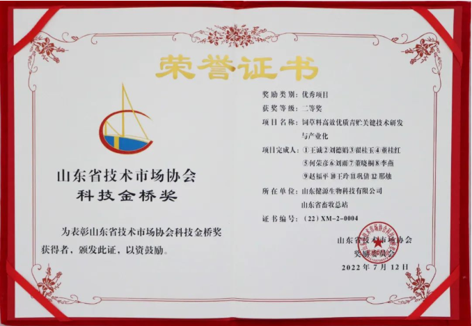 2022-8-11 【喜報(bào)】山東健源生物榮獲山東省科技金橋獎二等獎