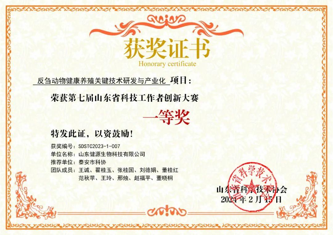 2024-3-2 健源生物項目榮獲山東省第七屆科技工作者創新大賽一等獎