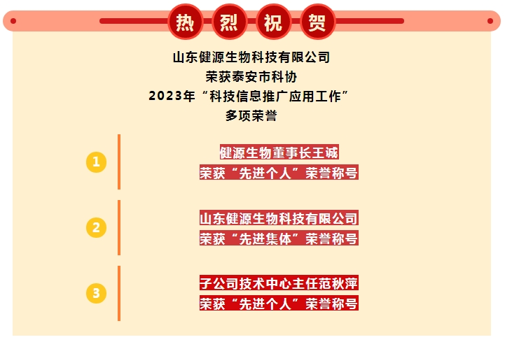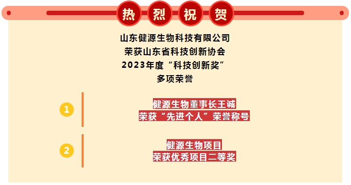 2023-12-28 健源生物兩款產品被山東省生物發酵產業協會評為“生物發酵優質品”
