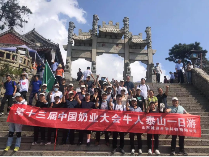 2022年9月6日,在第十三屆奶業大會、2022奶業D20峰會暨2022奶業展覽會期間,山東健源生物科技有限公司為感恩回饋各地牛人朋友對公司的支持和信任,公司精心安排了登泰山活動,登高望遠,為奶業加油!