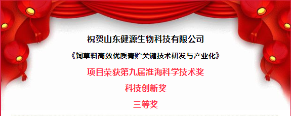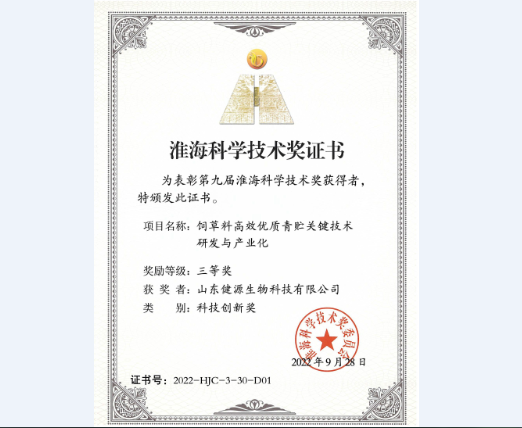 祝賀山東健源生物榮獲淮海科學(xué)技術(shù)獎科技創(chuàng)新獎三等獎