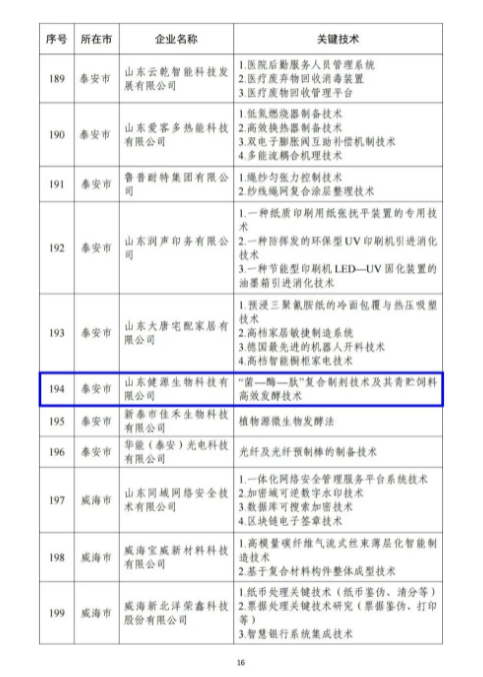 山東健源生物被認定為2023年山東省“一企一技術”研發中心